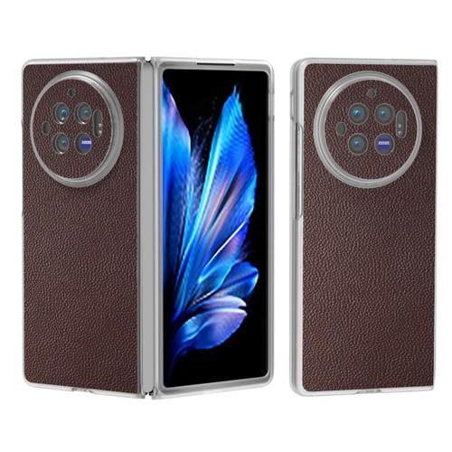 Para Vivo X Fold3 Abeel Funda para Teléfono con Borde Transparente Esmerilado Elegante de Cuero Genuino (Café)