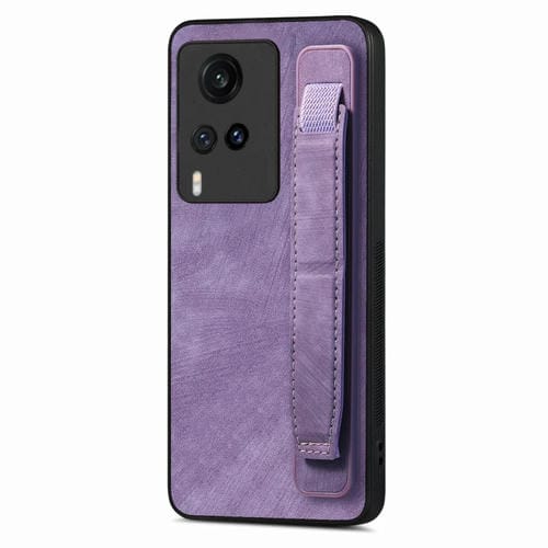 Para Vivo X60 Retro Muñequera Funda Trasera de Cuero para Teléfono (Púrpura)