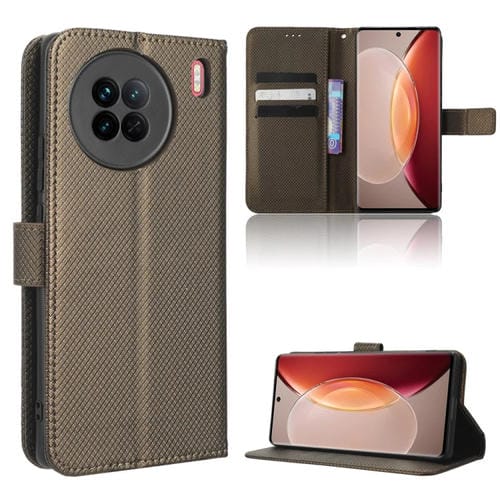Para Vivo X90 5G Caja del Teléfono de Cuero con Textura de Diamante (Marrón)