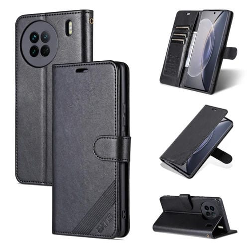 Para Vivo X90 Azns Piel de Oveja Textura Flip Funda de Cuero para Teléfono (Negro)
