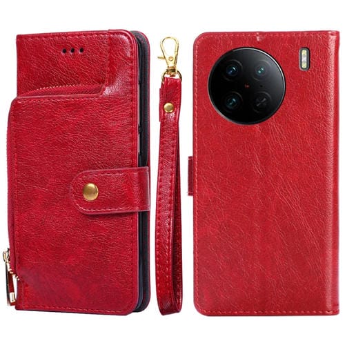 Para Vivo X90 Pro 5G Funda de Cuero con Cremallera para Teléfono (Rojo)