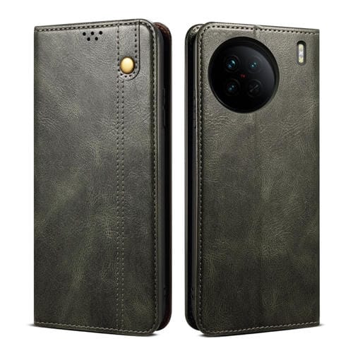 Para Vivo X90 Pro Oil Wax Crazy Horse Texture Funda de Cuero para Teléfono (Verde)