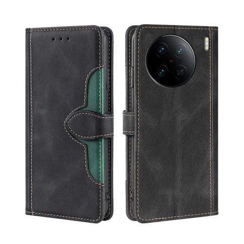 Para Vivo X90 Pro + Skin Feel Funda de Cuero con Hebilla Magnética para Teléfono (Negro)