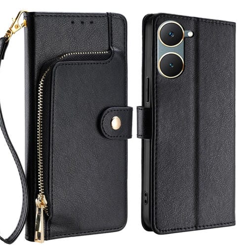 Para Vivo Y03 4G Funda de Cuero para Teléfono con Bolsa con Cremallera (Negro)