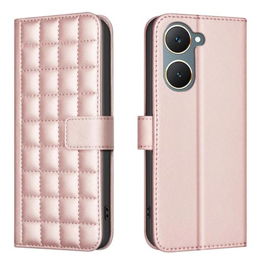 Para Vivo Y03 4G Funda de Cuero para Teléfono con Textura Cuadrada Global (Oro Rosa)