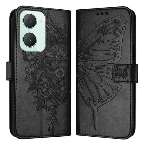 Para Vivo Y03 4G Funda para Teléfono de Cuero con Mariposa En Relieve Global (Negro)