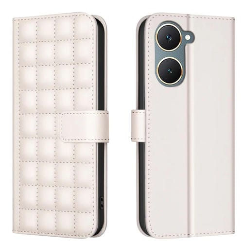 Para Vivo Y03 4G Global Funda de Cuero con Textura Cuadrada (Beige)