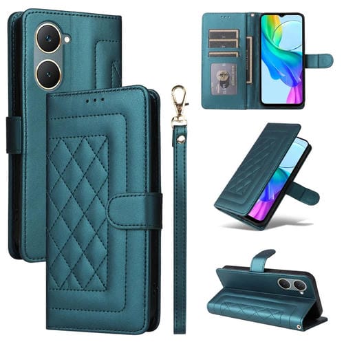 Para Vivo Y03 Diamond Lattice Funda de Cuero para Teléfono con Tapa (Verde)