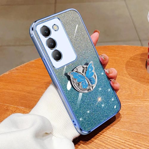 Para Vivo Y100 Funda para Teléfono de TPU con Soporte de Mariposa con Brillo Degradado Chapado En Idn (Azul Sierra)