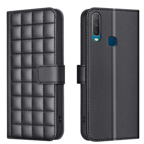 Para Vivo Y11 / Y15 / Y12 / Y17 Funda de Cuero para Teléfono con Textura Cuadrada (Negro)