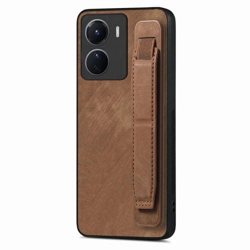 Para Vivo Y16 Retro Muñequera Funda Trasera de Cuero para Teléfono (Marrón)