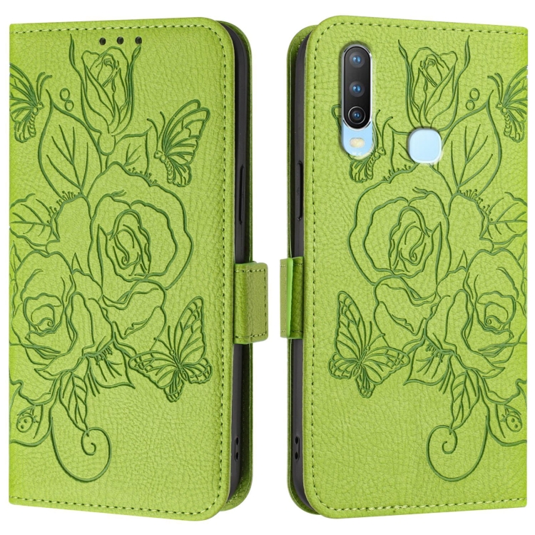 Para Vivo Y17 / Y15 / Y12 / Y11 Funda para Teléfono de Cuero Antirrobo Rfid con Rosa En Relieve (Verde)