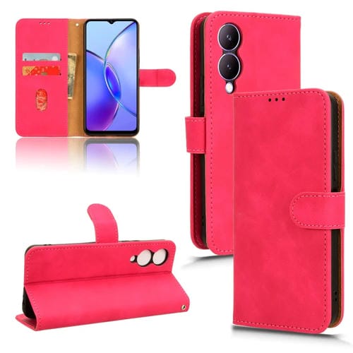 Para Vivo Y17S 4G Skin Feel Funda de Cuero con Tapa Magnética para Teléfono (Rojo Rosa)