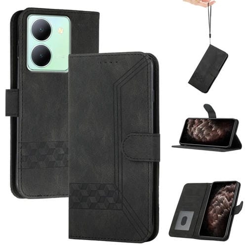 Para Vivo Y27S 4G Global Cubic Skin Feel Funda de Cuero con Tapa para Teléfono (Negro)