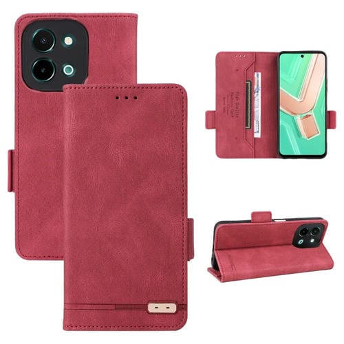 Para Vivo Y28 4G Funda de Cuero para Teléfono con Cierre Magnético (Rojo)