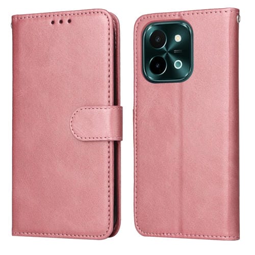 Para Vivo Y28 4G Funda para Teléfono de Cuero con Tapa con Textura de Becerro Clásica Global (Oro Rosa)