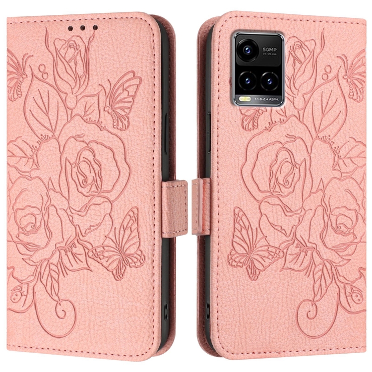 Para Vivo Y33S 4G Global / Y21 / Y21S / Y21T Funda para Teléfono de Cuero Antirrobo Rfid con Relieve Rosa (Rosa)