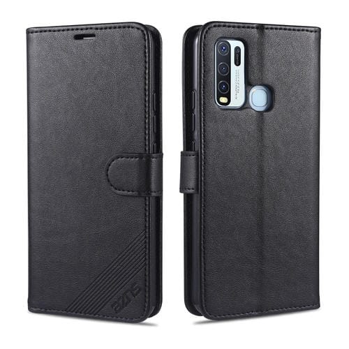 Para Vivo Y50 Azns Estuche de Cuero con Tapa Horizontal con Textura de Piel de Oveja con Soporte, Ranuras para Tarjetas y Billetera (Negro)