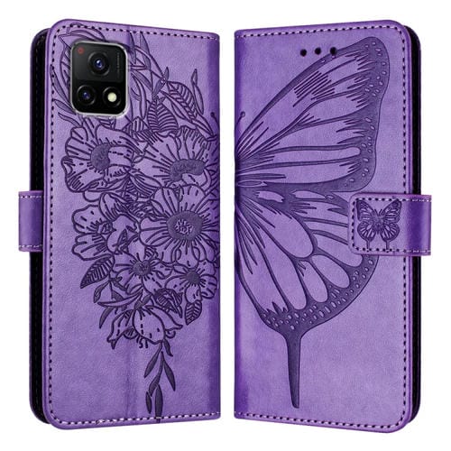 Para Vivo Y52S 5G / Iqoo U3 / Y31S 5G Funda para Teléfono de Cuero con Mariposa En Relieve (Púrpura Claro)