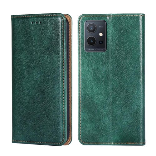 Para Vivo Y52T Caja de Teléfono de Cuero Magnético de Color Sólido de Aceite Brillante (Verde)