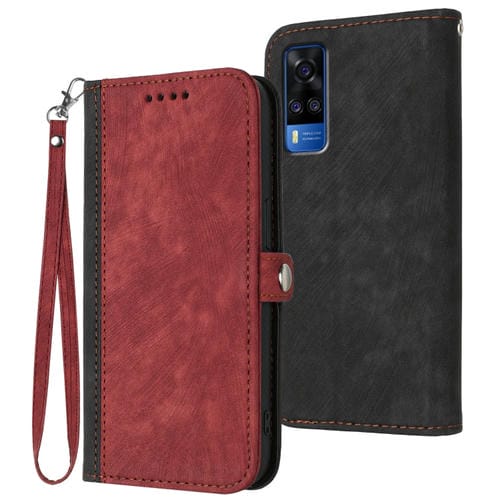 Para Vivo Y53S 4G / Y51A / Y33 4G Funda de Cuero para Teléfono con Correa de Mano con Doble Pliegue y Hebilla Lateral (Rojo)