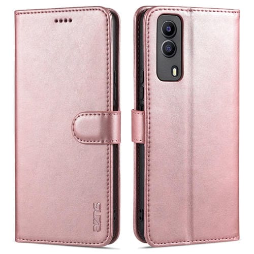 Para Vivo Y53S 5G Azns Siente la Piel de la Piel de la Carne de Becerro Funda de Cuero Horizontal Flip con Ranuras y Soporte para Tarjetas y Billetera (Oro Rosa)