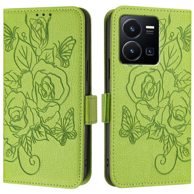 Para Vivo Y77 5G Global / Y77E 5G Funda para Teléfono de Cuero Antirrobo Rfid con Rosa En Relieve (Verde)