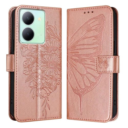 Para Vivo Y78 5G/Y78 + 5G Global/V29 Lite Funda para Teléfono de Cuero con Mariposa En Relieve (Oro Rosa)