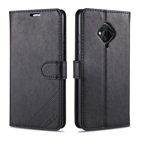 Para Vivo Y9S / V17 Azns Estuche de Cuero con Tapa Horizontal con Textura de Piel de Oveja con Soporte, Ranuras para Tarjetas y Billetera (Negro)