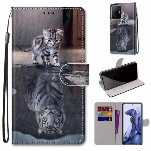Para Xiaomi 11T / 11T Pro Coloree Dibujos de Cross Cross Texture Horizontal Flip de Cuero Teléfono con Titular y Tarjetas Slots & Wallet & Lanyard (Cat Se Convierte En Tigre)