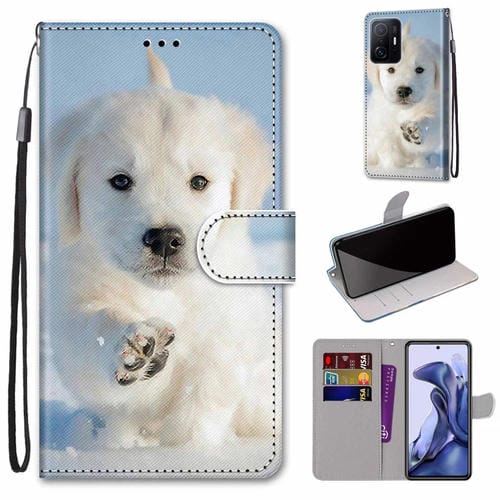 Para Xiaomi 11T / 11T Pro Dibujo de Colores Textura Cristrate Cultiva Horizontal Flip de Cuero de Cuero de Cuero con Titular y Tarjeta Slots & Wallet & Lanyard (Cachorro de Nieve)