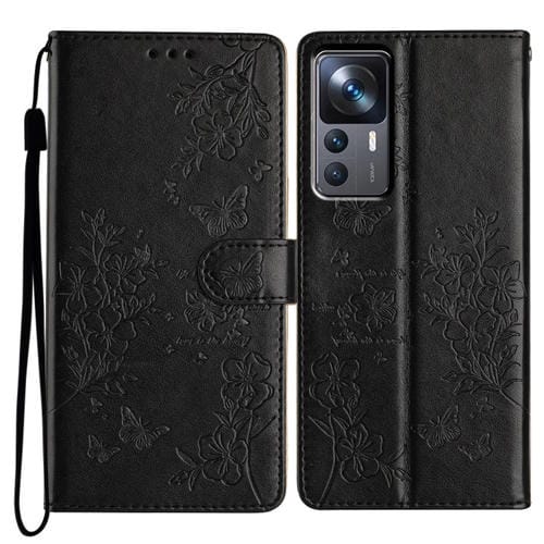Para Xiaomi 12T / 12T Pro Funda de Cuero para Teléfono con Mariposas y Flores (Negro)