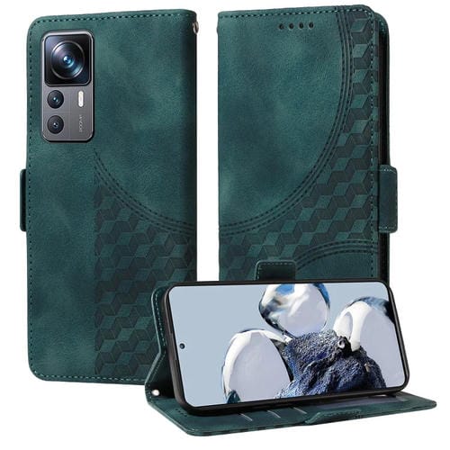 Para Xiaomi 12T / 12T Pro Funda de Teléfono de Cuero Estrellado con Rombos En Relieve (Verde)