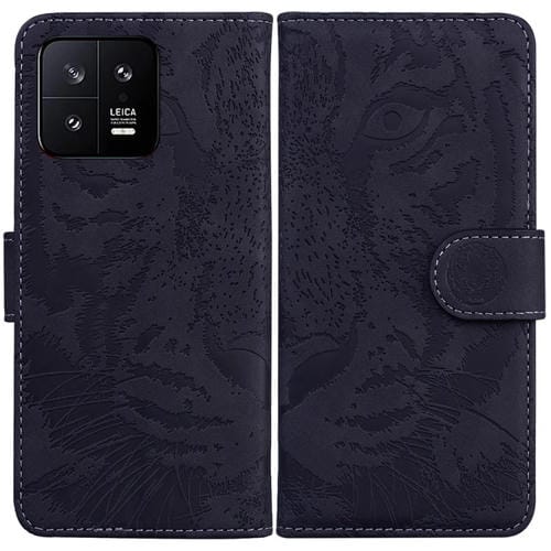 Para Xiaomi 13 5G Caja del Teléfono de Cuero con Estampado de Tigre En Relieve (Negro)