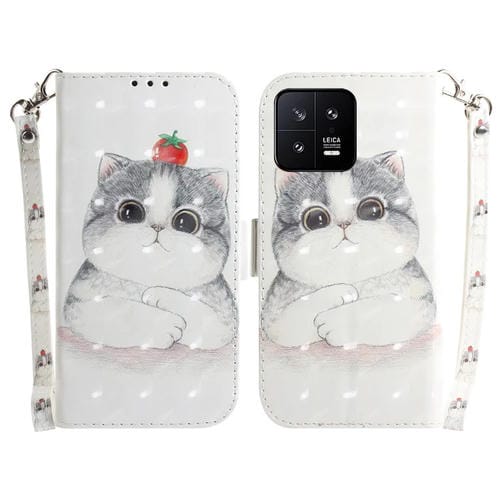 Para Xiaomi 13 5G Estuche de Teléfono de Cuero con Tapa Horizontal de Color 3D (Gato Lindo)