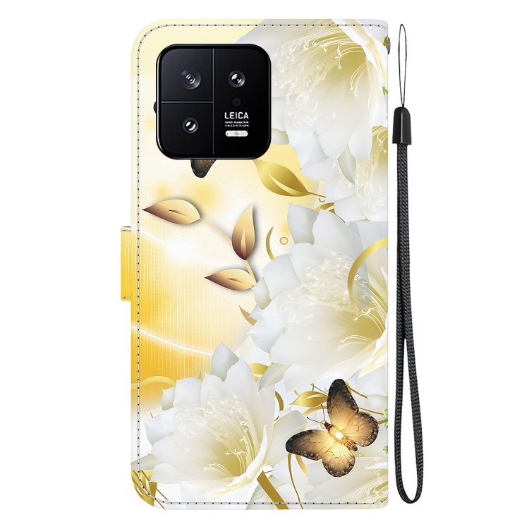 Para Xiaomi 13 5G Funda de Teléfono de Cuero con Dibujo Coloreado con Textura de Cristal (Epiphyllum de Mariposa Dorada)