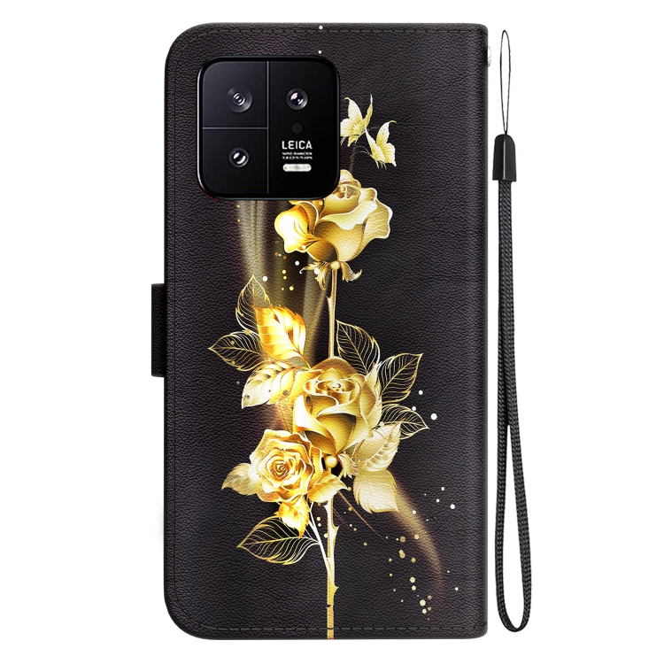 Para Xiaomi 13 5G Funda de Teléfono de Cuero con Dibujo Coloreado con Textura de Cristal (Mariposa Dorada Rosa)