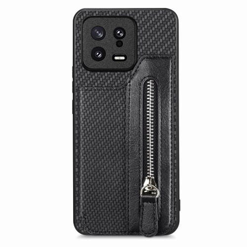 Para Xiaomi 13 Carbon Fiber Flip Zipper Wallet Phone Case (Negro)