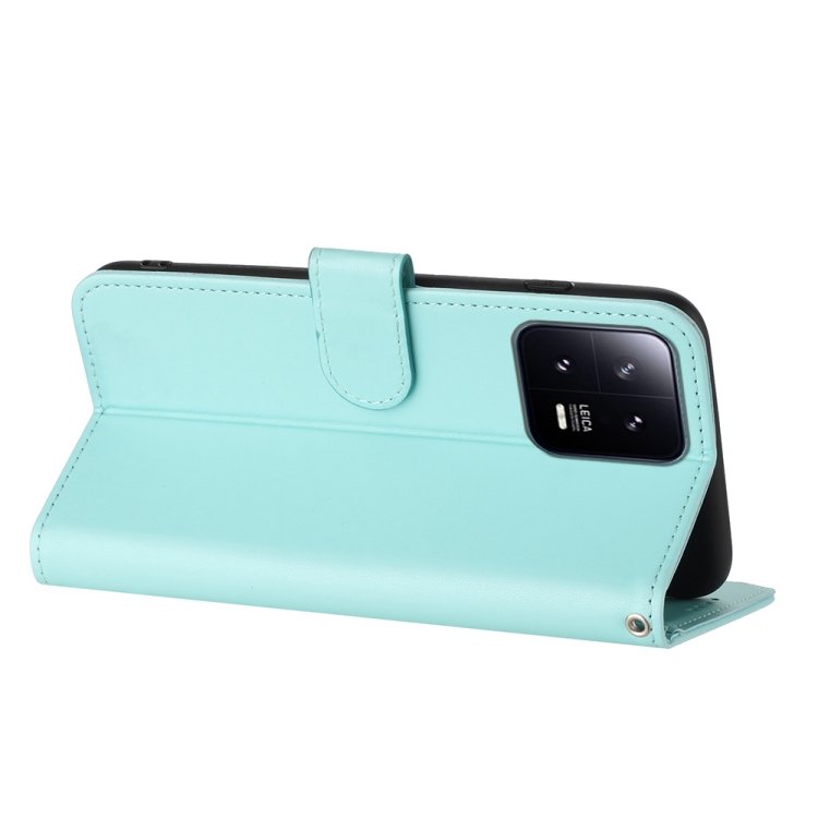 Para Xiaomi 13 Datura Flower Funda de Cuero con Tapa En Relieve (Azul Claro)