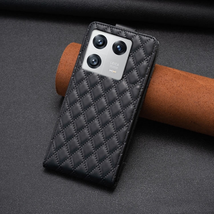 Para Xiaomi 13 Diamond Lattice Funda de Cuero con Tapa Vertical para Teléfono (Negro)