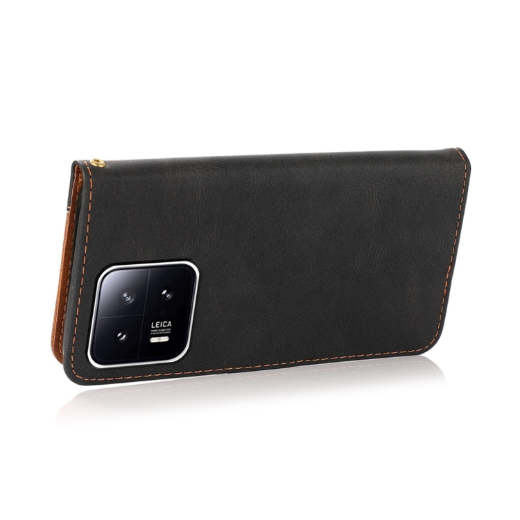 Para Xiaomi 13 Estuche de Teléfono de Cuero con Costuras de Dos Colores (Marrón Negro)