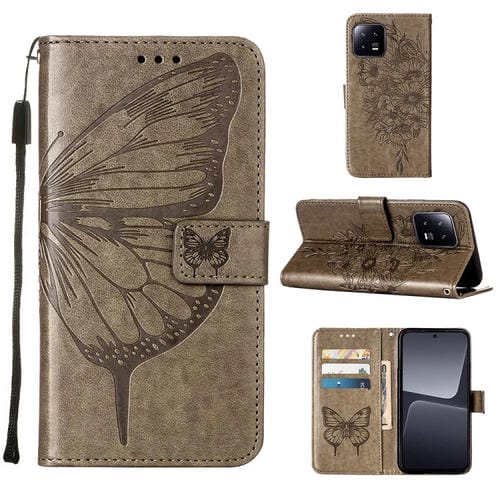 Para Xiaomi 13 Estuche para Teléfono de Cuero con Mariposa En Relieve (Gris)