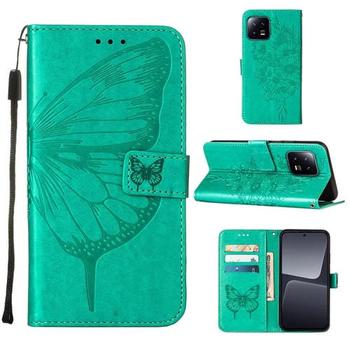 Para Xiaomi 13 Estuche para Teléfono de Cuero con Mariposa En Relieve (Verde)