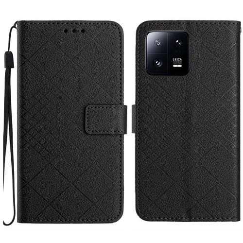 Para Xiaomi 13 Funda de Cuero con Textura de Rejilla Rómbica (Negro)