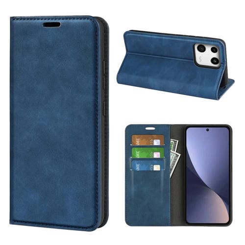 Para Xiaomi 13 Funda de Teléfono de Cuero con Succión Magnética de Piel Retro (Azul Oscuro)