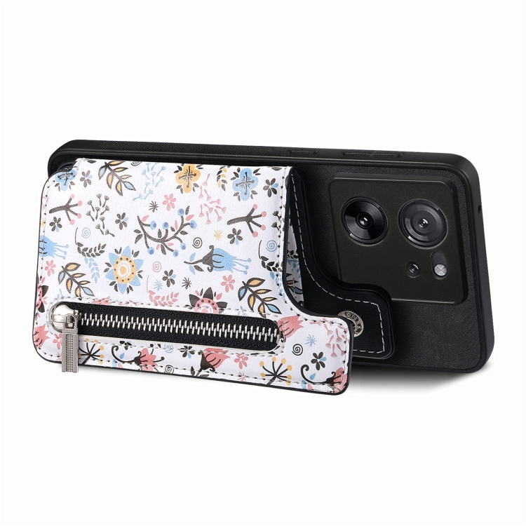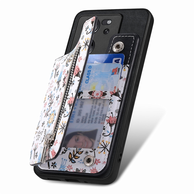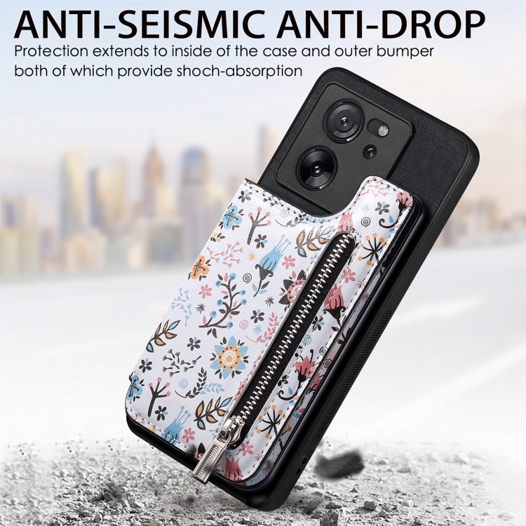 Para Xiaomi 13 Funda Trasera para Teléfono con Billetera con Cremallera Pintada Retro (Negro)