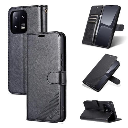 Para Xiaomi 13 Pro Azns Textura de Piel de Oveja Flip Funda de Cuero para Teléfono (Negro)