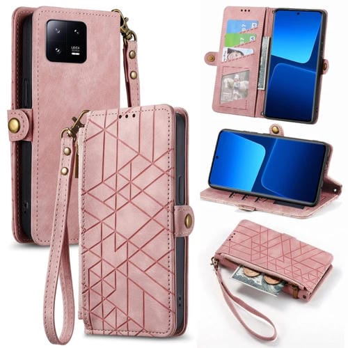 Para Xiaomi 13 Pro Estuche para Teléfono de Cuero con Cremallera Geométrica y Hebilla Lateral (Rosa)