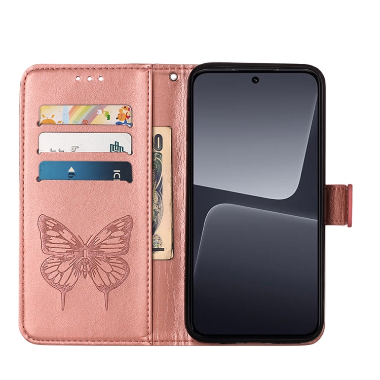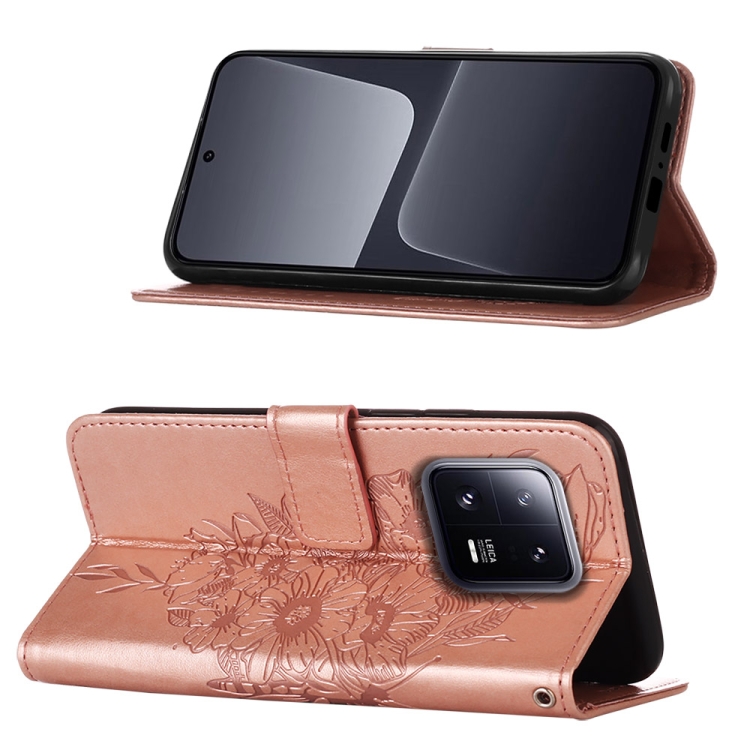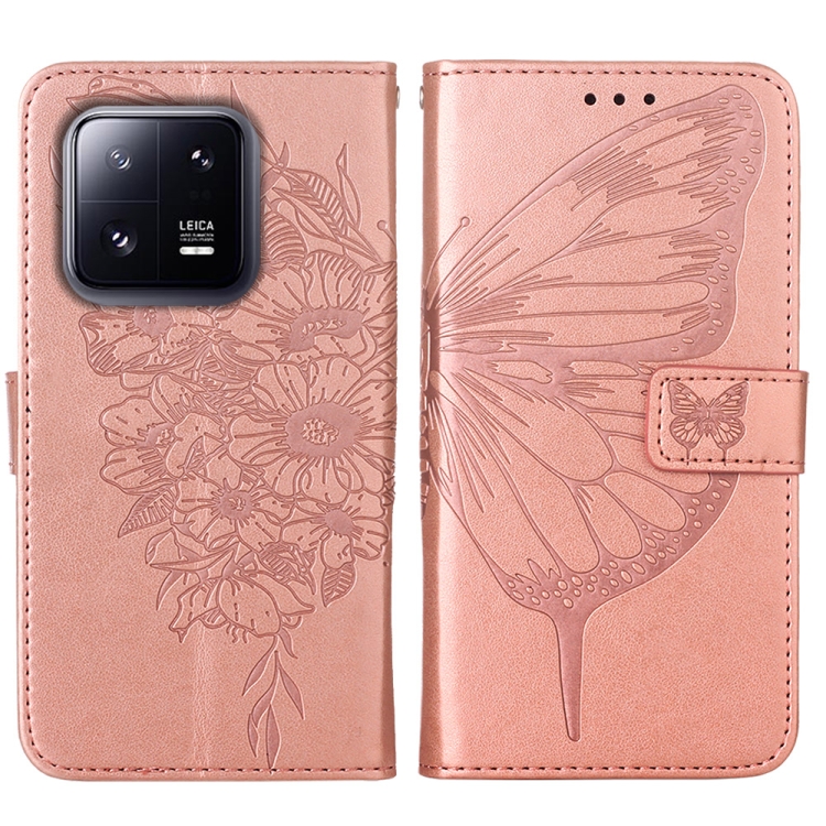 Para Xiaomi 13 Pro Estuche para Teléfono de Cuero con Mariposa En Relieve (Oro Rosa)