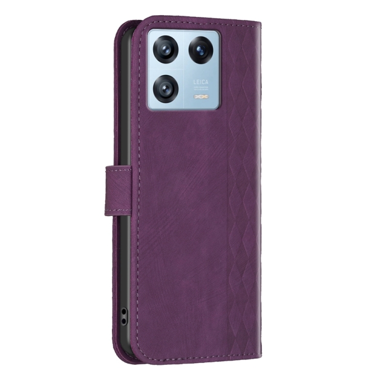 Para Xiaomi 13 Pro Estuche para Teléfono de Cuero En Relieve a Cuadros (Púrpura)